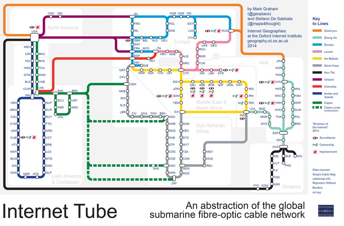 Главная » ИКТ Глобальная карта морской оптики Автор infopolicy На чтение 1 мин Просмотров 324 Опубликовано 19.01.2015 Очень любопытно с точки зрения глобальной интернет-инфраструктуры: Источник: http://geography.oii.ox.ac.uk/?page=internet-tube Похожее