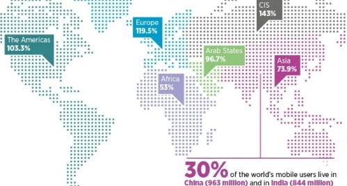 В мире 7 миллиардов жителей, 5.9 миллиардов — мобильные пользователи. 87% населения мира имеют мобильные телефоны.