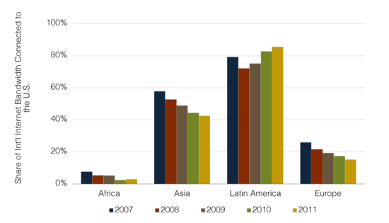 Глобальный интернет менее централизован относительно США, чем десять лет назад.