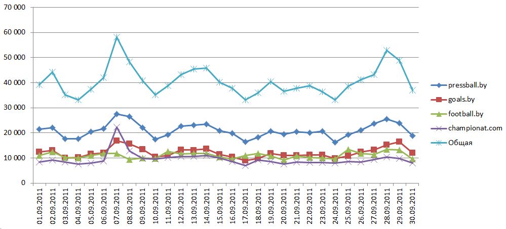 7 сентября — трагедия с самолетом, видно, что российский championat.com был более посещаем, чем большинство белорусских спортивных сайтов.