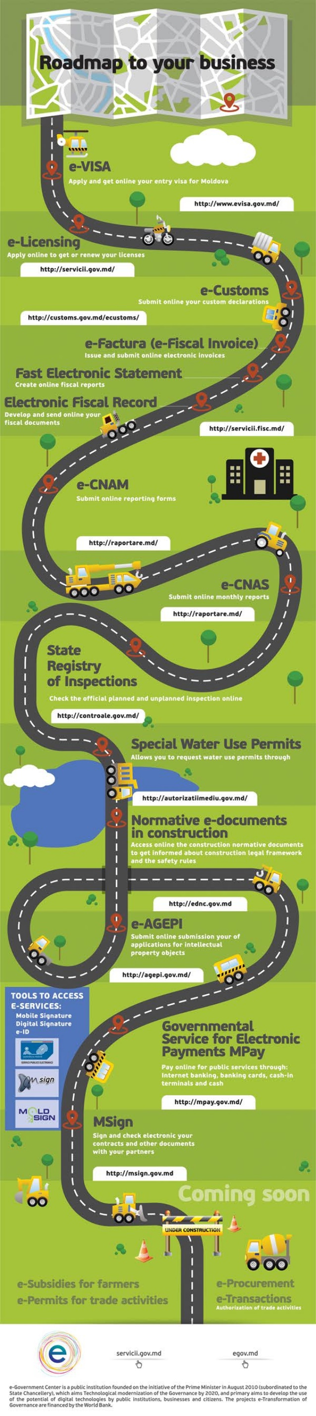 Главная » E-Government Инфографика дня: E-Gov сервисы для бизнеса в Молдове Автор infopolicy На чтение 1 мин Просмотров 507 Опубликовано 29.04.2015 Хорошая дорожная карта: Источник: http://www.slideshare.net/eGuvernare_Moldova/road-47506661 Похожее