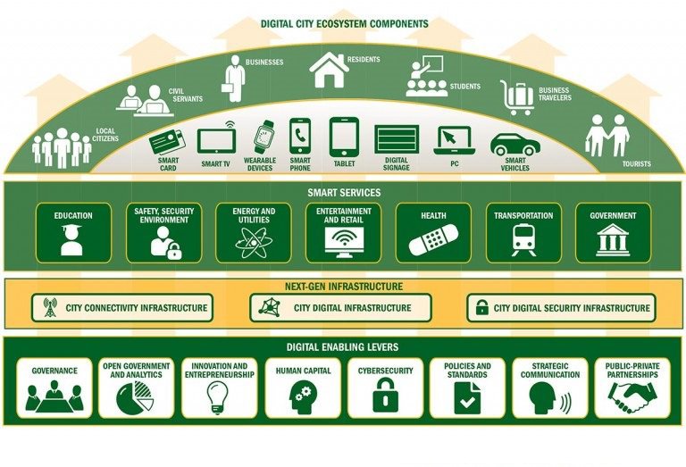 Часто надо отделять понятие «умный город» (Smart City) от цифрового (digital), так как #SmartCity не включает многие компоненты, которые возникли благодаря дигитализации (парковка, нулевая эмиссия домов, транспорт и так далее), но приобрели новый смысл благодаря дигитализации: