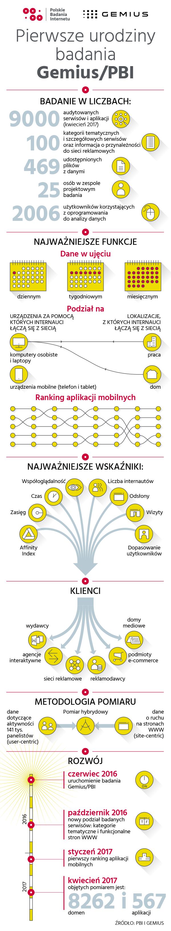Компания PBI и компания Gemius подвели итоги первого года исследования Gemius/PBI, стандарт измерения интернет-аудитории на польском рынке. Исследование было запущено 2 июня 2016, после перерыва в несколько месяцев. За год в исследование произошло ряд изменений: