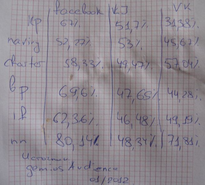 Проценты — это аудитория новостных сайтов, которая побывала на вышеупомянутых социальных медиа, так называемое пересечение аудиторий.