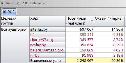 Справочно, аудитории новостных сайтов в январе 2012 года: