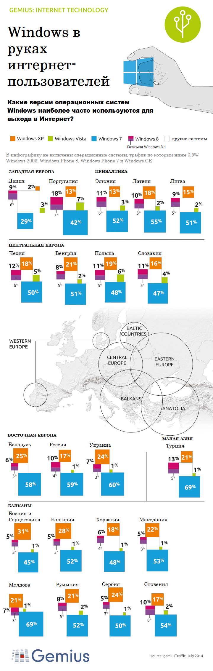 Данные взяты из исследования Gemius по измерению трафика веб-сайтов (gemiusTraffic), которое проводится Gemius в более чем 20 странах Европы, Ближнего Востока и Северной Африки (регион EMEA).