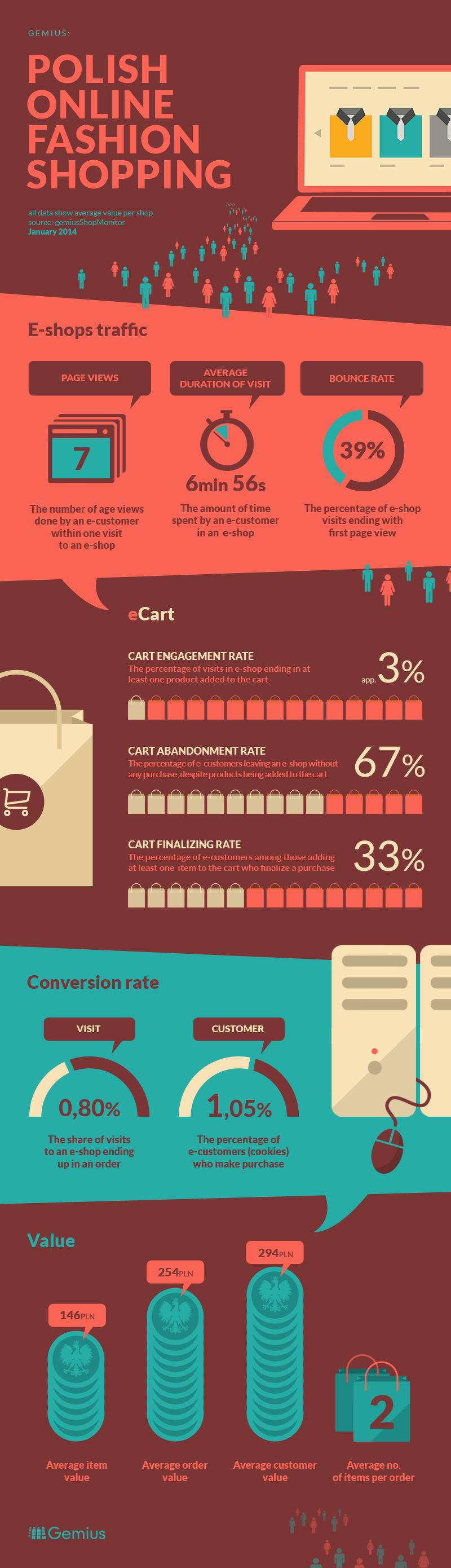 В среднем польский интернет-пользователь тратит на покупку одежды, обуви и аксессуаров PLN 253.81 за одну транзакцию. При средней цене продукта PLN 145.95. Еще две трети визитов заканчиваются без покупки.