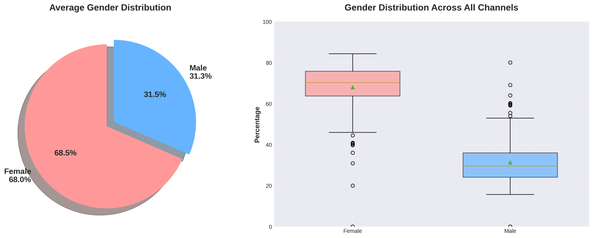 Гендерное распределение показывает явное преобладание женской аудитории. Женщины составляют 68% подписчиков, что почти в два раза превышает мужскую аудиторию в 31.3%. Эта диспропорция не случайна и отражает как особенности использования Instagram в целом, так и специфику подачи контента беларускими медиа.