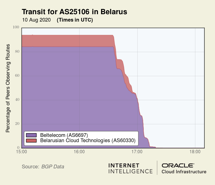 AS25106 снова вышел из строя в Беларуси в 16:46 UTC (19:46 местного времени):
