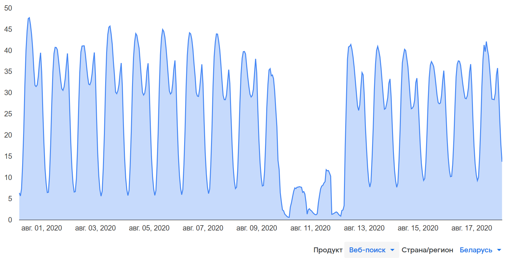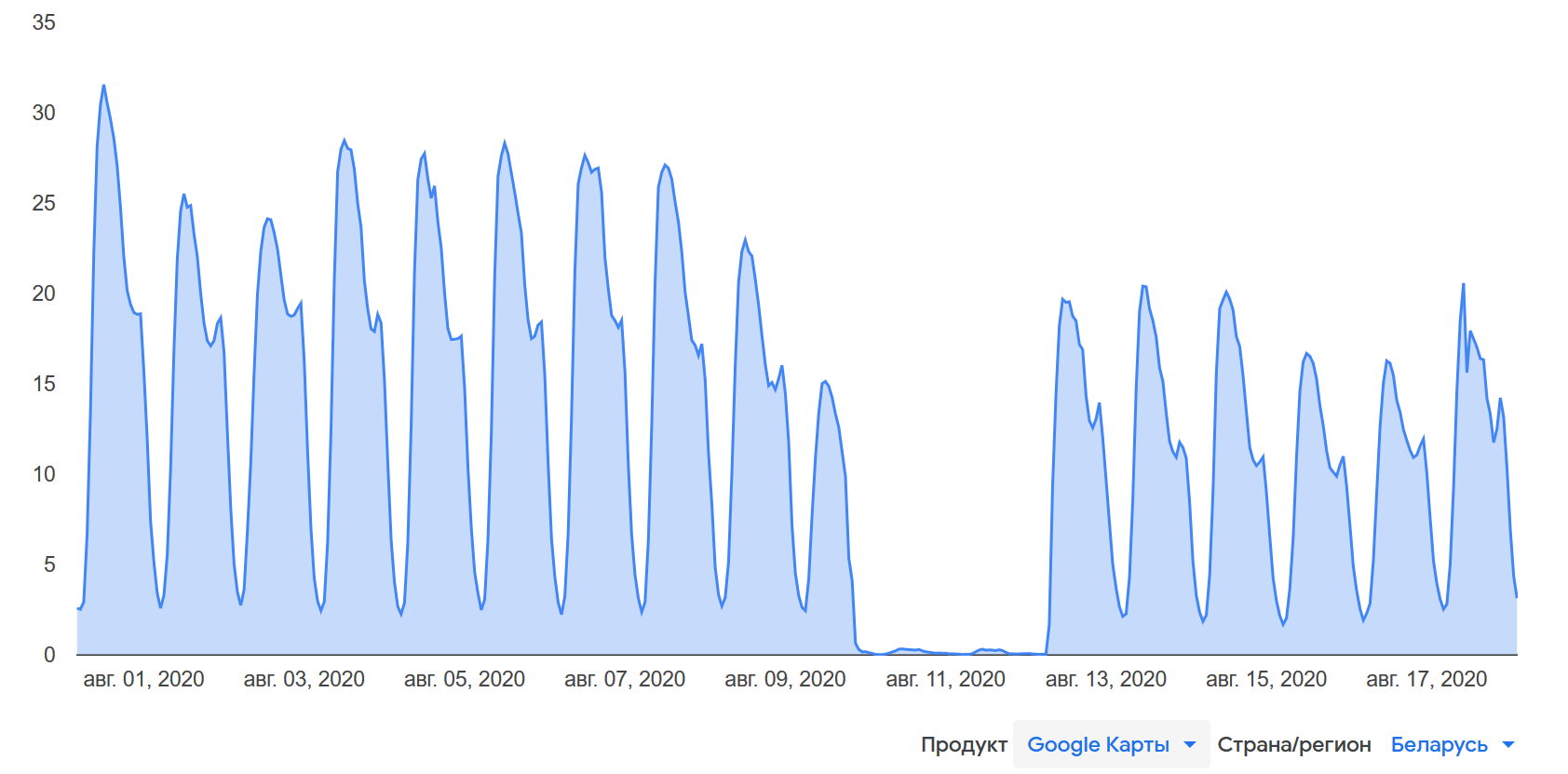 На беларуском графике видна кратковременная блокировка 17 августа 2020.
