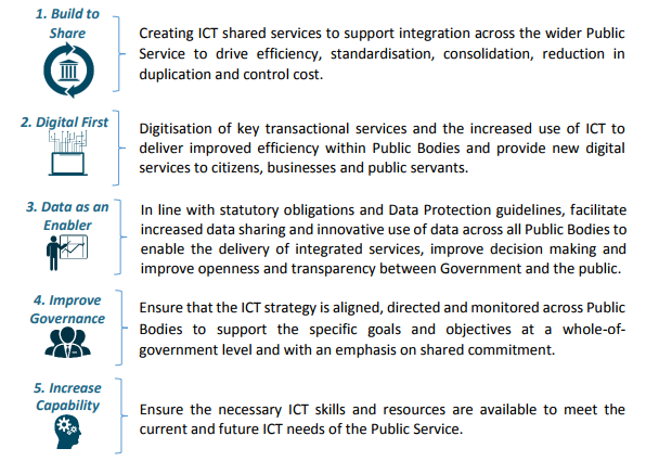 Стратегия развития e-government в Ирландии основывается на пяти основных принципах: