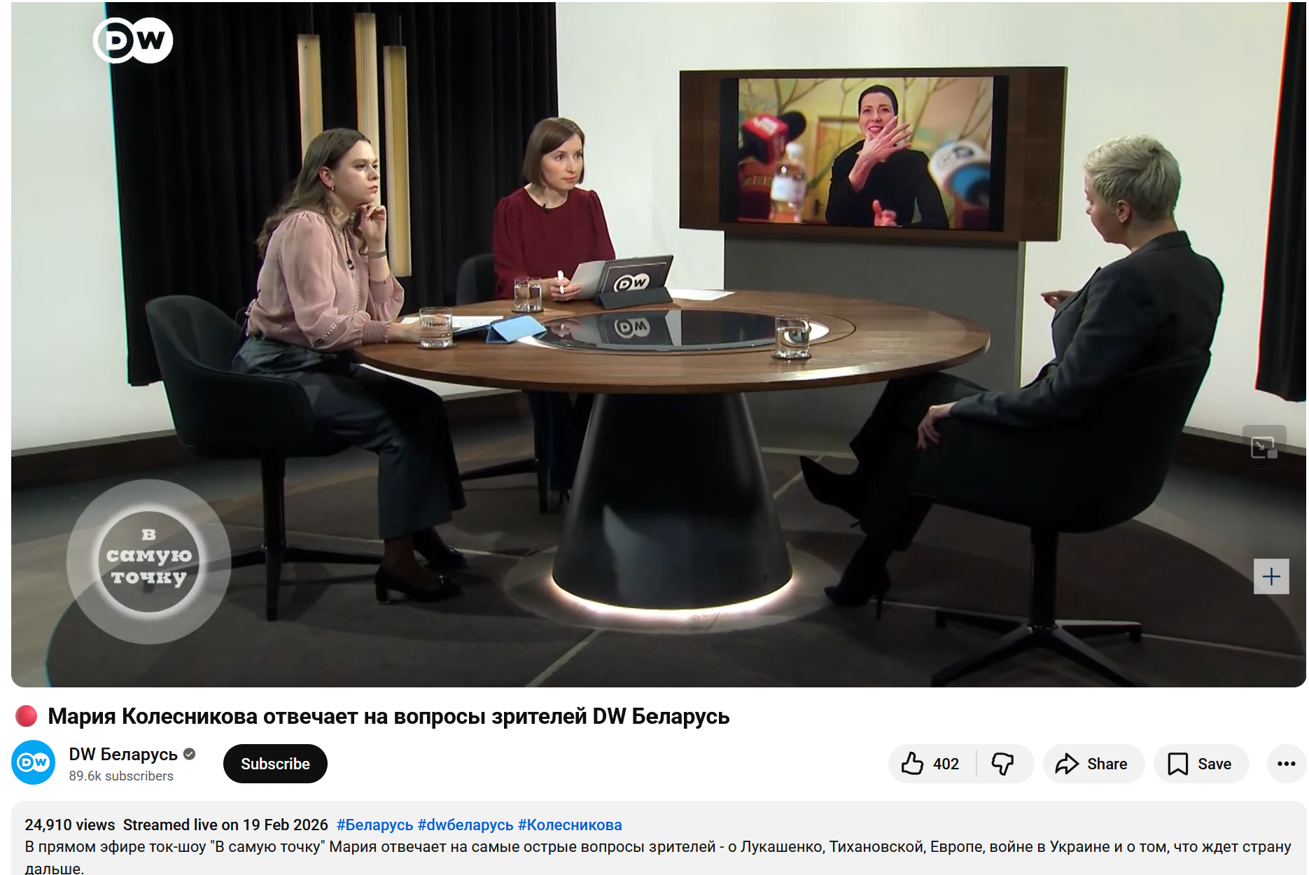 Большие ожидания были от стрима на DW Беларусь с участием Марии Колесниковой: