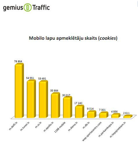 В Латвии уже несколько месяцев регулярно публикуются данные о мобильном трафике ведущих латвийских сайтов на основе gemiusTraffic: