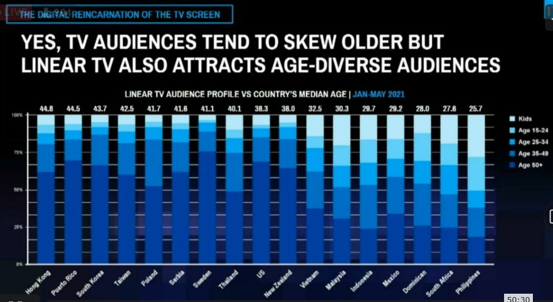 В частности про важность традиционного телевидения для всех возрастных групп, не только старшие возрастные группы: