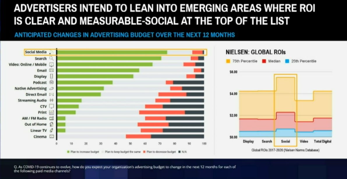 Рекламодатели намерены использовать новые медиаканалы, в которых рентабельность инвестиций (ROI) ясна и измерима. Социальные медиа в топе: