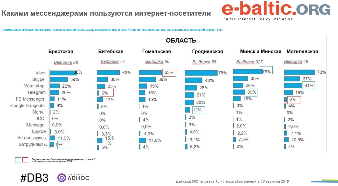 Региональный анализ показывает, что Telegram наиболее популярен у пользователей Минска и Минской области:
