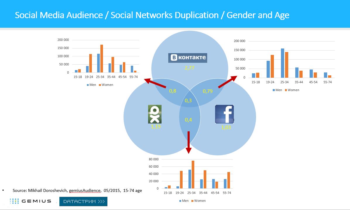 Источник данных: Михаил Дорошевич, медиаисследование gemiusAudience, 05/2015, 15-74