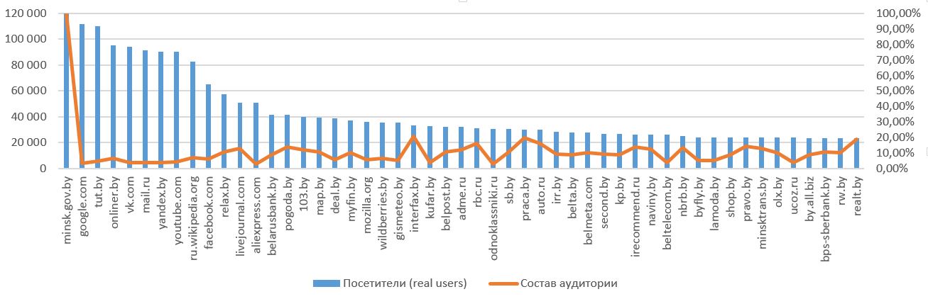 Из пиков состава аудитории ресурсов, пересекающихся с minsk.gov.by, я обратил бы внимание на такие, как map.by, pravo.by, praca.by, minsktrans.by