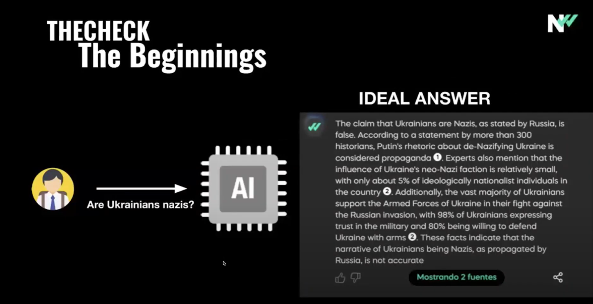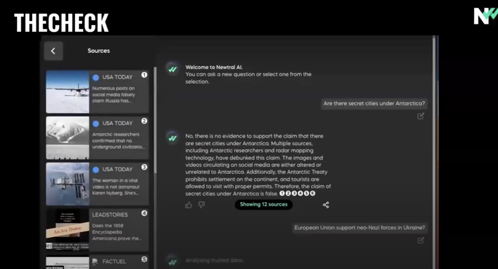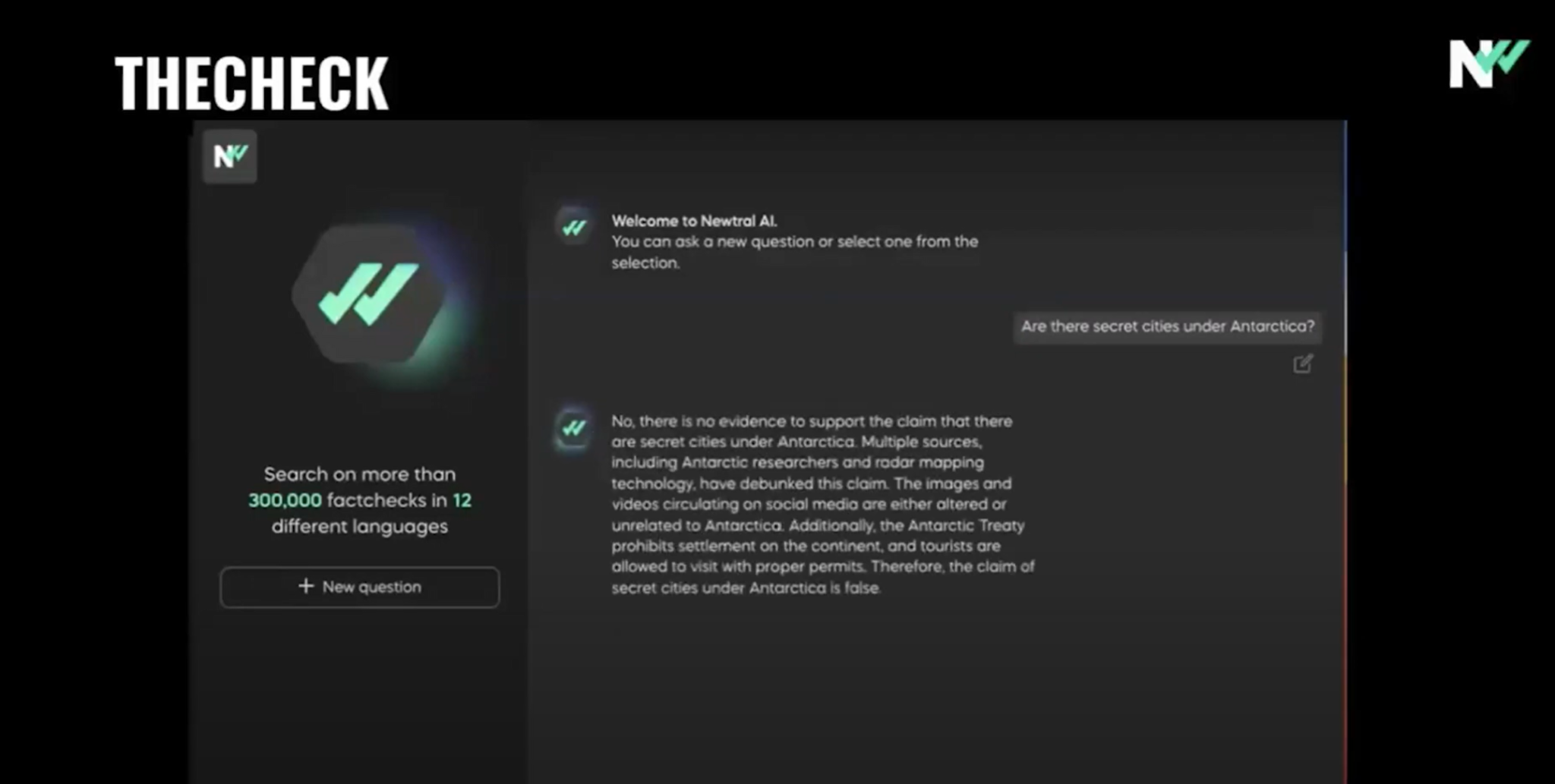 (0:18) TEC — это мультиязычный чат-бот на базе генеративного ИИ для борьбы с дезинформацией. (0:23) Нам нравится думать о нем как о GPT для фактов, и в Neutral мы работаем с глубокой линией WhatsApp (0:30), чтобы отвечать на вопросы людей, однако с появлением таких инструментов, как ChatGPT, этот (0:36) традиционный чатбот может показаться устаревшим, и именно поэтому мы начали разрабатывать этот проект.