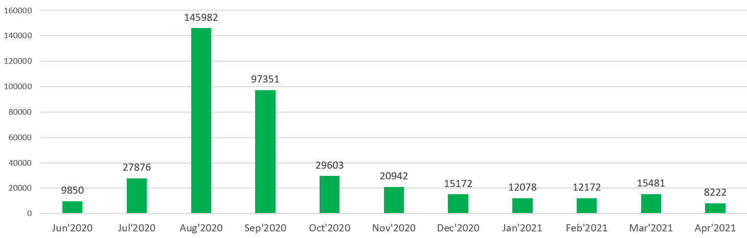 | Июнь’2020 | Июль’2020 | Август’2020 | Сентябрь’2020 | Октябрь’2020 | Ноябрь’2020 | Декабрь’2020 | Январь’2021 | Февраль’2021 | Март’2021 | Апрель’2021 |