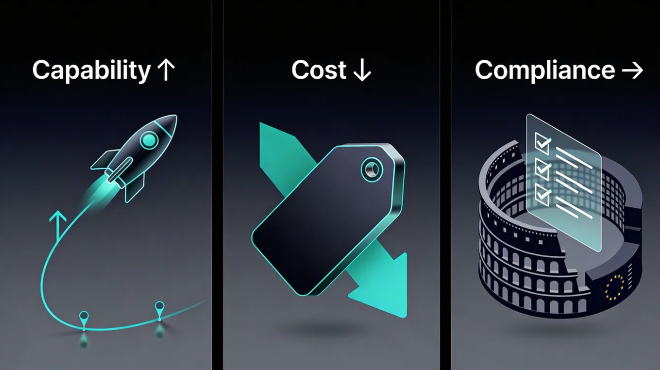 Эти изменения напрямую влияют на рабочие нагрузки RAG, анализ длинных документов и сложные трассировки с использованием нескольких инструментов, где длина и объем контекста являются основными факторами, определяющими стоимость. В то же время агрессивные ценовые шаги конкурентов, особенно в Европе, подрывают позиции передовых лабораторий США в отношении экономически чувствительных или регулируемых ЕС развертываний, заставляя покупателей отдавать приоритет надежности, соответствию стандартам и качеству интеграции, а не доступу к единому «премиальному» семейству закрытых моделей.