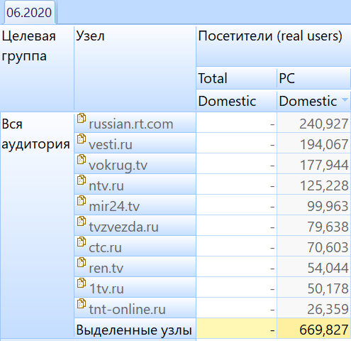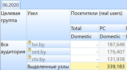 Для сравнения аудиторий вебсайтов беларуских и российских телевизионных сайтов используем, доступные на рекламном рынке, результаты медиаисследования gemiusAudience за июнь 2020 года: