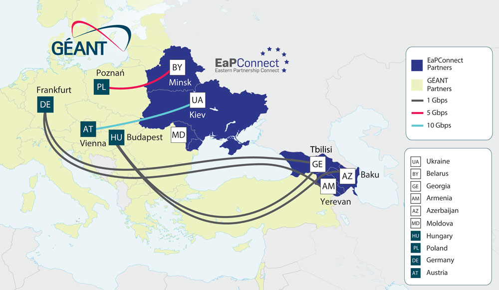 В рамках финансируемого Европейским союзом проекта Eastern Partnership Connect (EaPConnect) в июне была увеличена в десять раз скорость соединения Украины (URAN) с научно-исследовательской сетью GEANТ: С 1 гигабита в секунду до 10 гигабит в секунду.