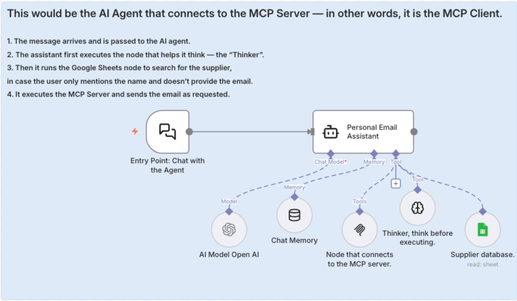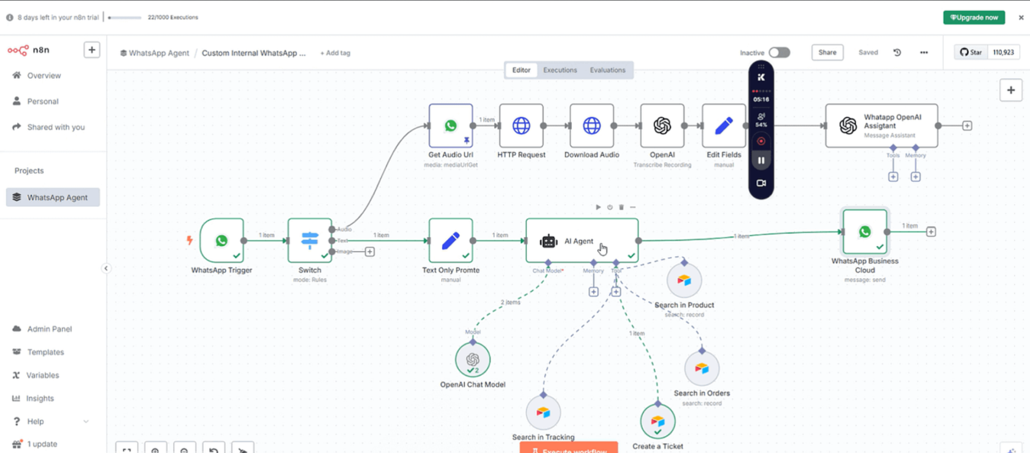 Объедините узел AI Agent от n8n с OpenAI/ChatGPT , Claude или локальными моделями через Ollama , чтобы создать рабочие процессы поддержки, которые не просто отвечают — они понимают.