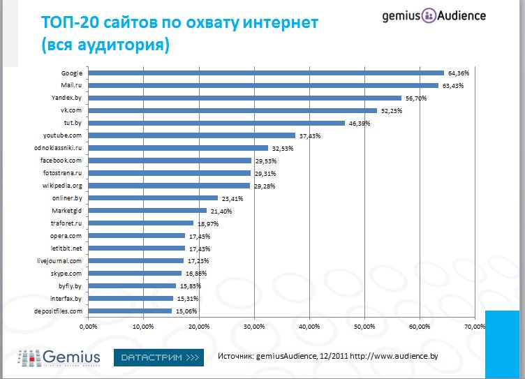http://www.slideshare.net/gemius_belarus/belarusian-internet-audience-the-results-of-the-fusion-panel-december-2011