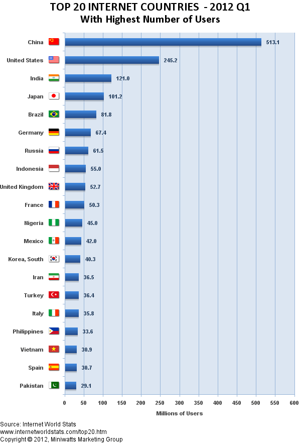 Главная » Без рубрики ТОП20 Интернет-стран в первом квартале 2012 Автор infopolicy На чтение 1 мин Просмотров 324 Опубликовано 02.05.2012 Просто, чтобы знать: Источник: http://www.internetworldstats.com/top20.htm Похожее